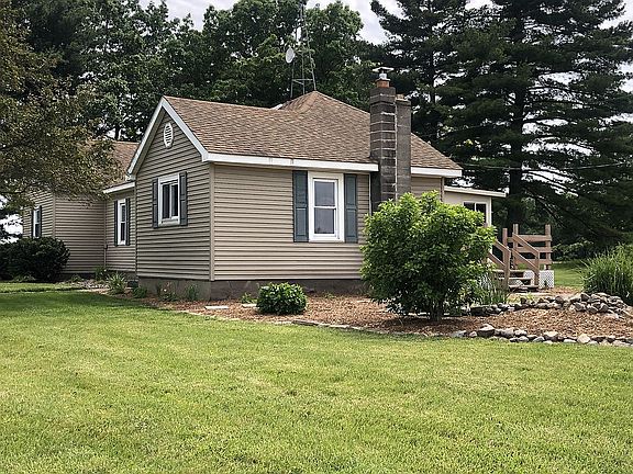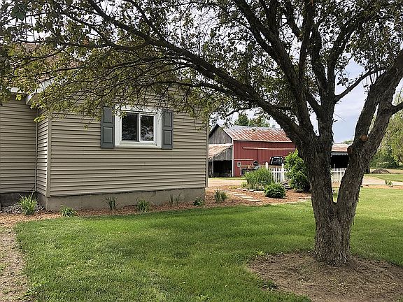 County living on 2-acres surrounded by mature trees and farm fields. Home has 3 bedrooms, walk-in closets and a cedar-lined closet. Large 4-season room with thermostat-controlled propane fireplace. Kitchen has beautiful solid oak cabinets with plenty of storage. Mudroom with washer hookup, dryer and utility sink. Solid oak doors and oak trim in most of home. Stone fire pit and a large chicken coop (8-10 chickens). Outbuilding: barn, 3-bay open equipment shed, 1-car detached garage.