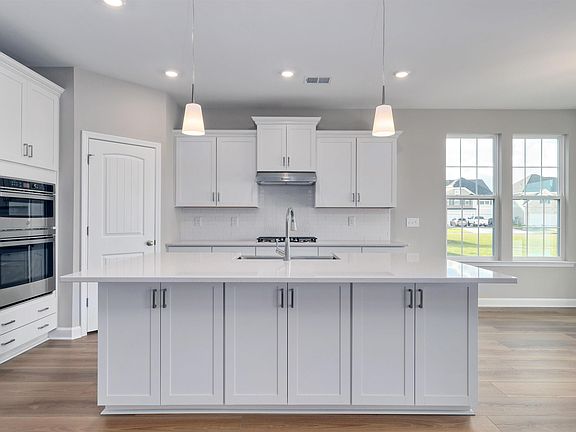 Welcome to the Bates II A! This has major curb appeal & a front porch for your rockers. A stunning single-story home has three bedrooms and two baths with an inviting foyer, sunroom and covered patio. Split bedroom layout. The living room showcases a decorative coffered-ceiling sure to wow! Open concept living flows seamlessly from the living room into the kitchen, featuring gourmet kitchen with soft close upgraded cabinets, quartz countertops and upgraded stainless gas cooktop and wall oven. At the back of the home, the primary suite hosts a tray ceiling with ceiling fan. En-suite bath has a double vanity with quartz tops and a five-foot tiled shower with glass doors. The sunroom and covered porch out back are perfect for entertaining friends in your wooded backyard! Additional options include gorgeous LVP in the primary suite & black finishes on the lighting and faucets make it pop! Laundry with cabinets & laundry basket pass through door, and a smart home automation system.