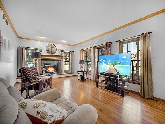 Introducing a breathtaking two-story gem, gracefully perched on a hill in the desirable Critchfield school district. This exceptional home, features 3 bedrooms and 3.5 bathrooms and don't miss that magnificent exterior two-story stone fireplace that serves as a captivating curb appeal focal point. As you step through the front door, you'll instantly feel the warmth of a lovingly maintained one-owner home. The exquisite hardwood floors immediately draw your eye, leading you into the expansive living room, where natural light pours in through generous windows, and the inviting gas log fireplace beckons you to unwind. Continue your journey down those beautiful floors to discover the heart of the home: a spacious, recently renovated eat-in kitchen. With plenty of counter space and abundant cabinetry, this kitchen is perfect for all your baking adventures. Plus, all appliances will remain, making it easy to settle in and start your new life in this stunning space. Off the kitchen, you'll find Door #1, which leads to a charming screened-in porch--an ideal spot for enjoying football games or sipping your morning coffee. Door #2 opens to the back deck and yard, perfect for outdoor gatherings and relaxation. The main floor also features a generous primary bedroom complete with its own en-suite bathroom. Upstairs, you'll discover two spacious bedrooms with large closets and plenty of natural light, complemented by a sizable bathroom that shouldn't be missed. Venturing downstairs, you'll find a large finished family room with a cozy wood-burning fireplace, along with a full bathroom. Nestled on a peaceful cul-de-sac, this property is set on just over half an acre, providing ample space for outdoor enjoyment. The oversized 2.5-car garage conveniently leads into a functional mudroom/laundry area, complete with a half bath for added convenience. Don't miss out on this incredible opportunity - schedule today and make this home yours!