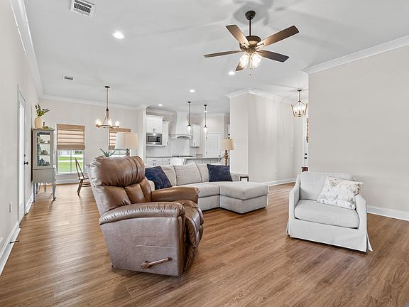 Welcome to this exceptional 4-bedroom, 3-bathroom Acadian-style home in the highly desirable Kaden Creek subdivision. Built in 2022 and offering 2,249 square feet of refined living space, this home sits in Flood Zone X—providing both peace of mind and elevated living. Step inside to a thoughtfully designed interior filled with natural light, upscale finishes, and timeless charm. Recessed lighting throughout the home enhances its warm, welcoming ambiance, while above-cabinet and under-cabinet kitchen lighting adds both elegance and functionality. The spacious living area features a stunning gas fireplace with a cypress beam mantle and a classic brick hearth—perfect for cozy evenings and stylish gatherings. The luxurious master suite offers the ideal retreat, showcasing luxury vinyl plank flooring, a frameless glass walk-in shower, granite countertops, and a custom linen cabinet. The generous walk-in closet is complete with a built-in cabinet chest along the exterior wall—providing smart storage with a touch of charm. Even the laundry room has been elevated with a base cabinet and built-in pull-out drawer to keep detergents and supplies neatly organized. Outside, enjoy traditional Acadian curb appeal, soffit exterior lighting for a beautifully illuminated façade, and a layout designed for modern living. Best of all, the homeowner association does not restrict the addition of future structures on the lot—offering flexibility for workshops, outdoor kitchens, or more. This home is truly move-in ready with custom upgrades throughout. There is also gas, water, and electricity ready for you to design your own outdoor kitchen. Schedule your private tour today and experience the comfort, quality, and craftsmanship of Kaden Creek living.