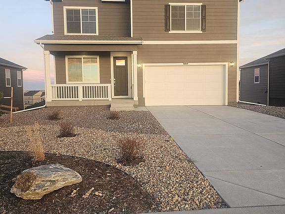 Be the first to call this gorgeous brand new home home! Home is located within 15 minutes from Southlands mall and very close proximity to Castle Rock and Parker. Watch the sunrise from your back deck and the sunsets from your front porch! Spacious west facing home with full walkout basement, fully landscaped yard and all appliances Plus Prestigious Douglas County Schools. Can it get any better? Beautiful turn-key home with 4 beds, 3 bath, office and huge loft for a second living area! Open flow between great room, dining, and kitchen. Enjoy the convenience of working from home in the main floor flex space split away from other living areas. Light and bright decor features including classic white cabinetry with crown molding, beautiful granite kitchen counters with subway tile back splash, stainless appliances, plank flooring throughout most of the first floor plus quartz bath countertops & tile floors. This home offers an extensive list of features including 8' front door, 2 panel interior doors and craftsman style trim, A/C, front yard Xeriscape, 8' tall garage doors, plus Smart Home features: keyless entry, video doorbell, Smart garage door opener, lighting, thermostat, and Smart speaker. This home also boasts of a huge backyard perfect for entertainment.