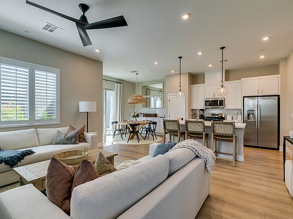 Come home to this highly upgraded 2023-built corner lot, with a 3-bedroom, 3-bath townhome in Inspirada Town Center. The townhome is within walking distance of a shopping center that has restaurants and shops to enjoy. This townhome features a two-car garage and a beautifully landscaped backyard. The interior features a modern kitchen with all stainless-steel appliances and opens up to the living room. The upstairs has a spacious master bedroom and bath, and two bedrooms and a full bath.