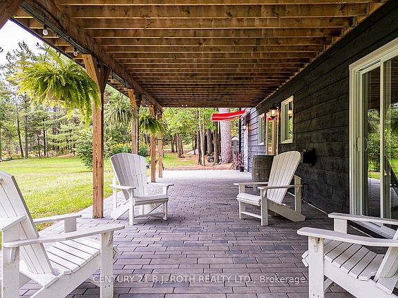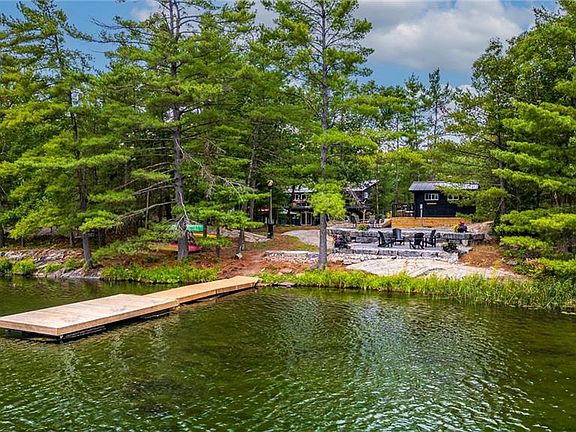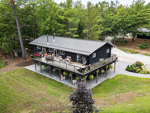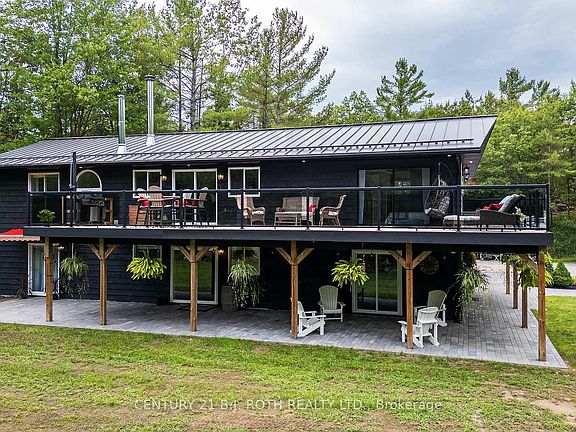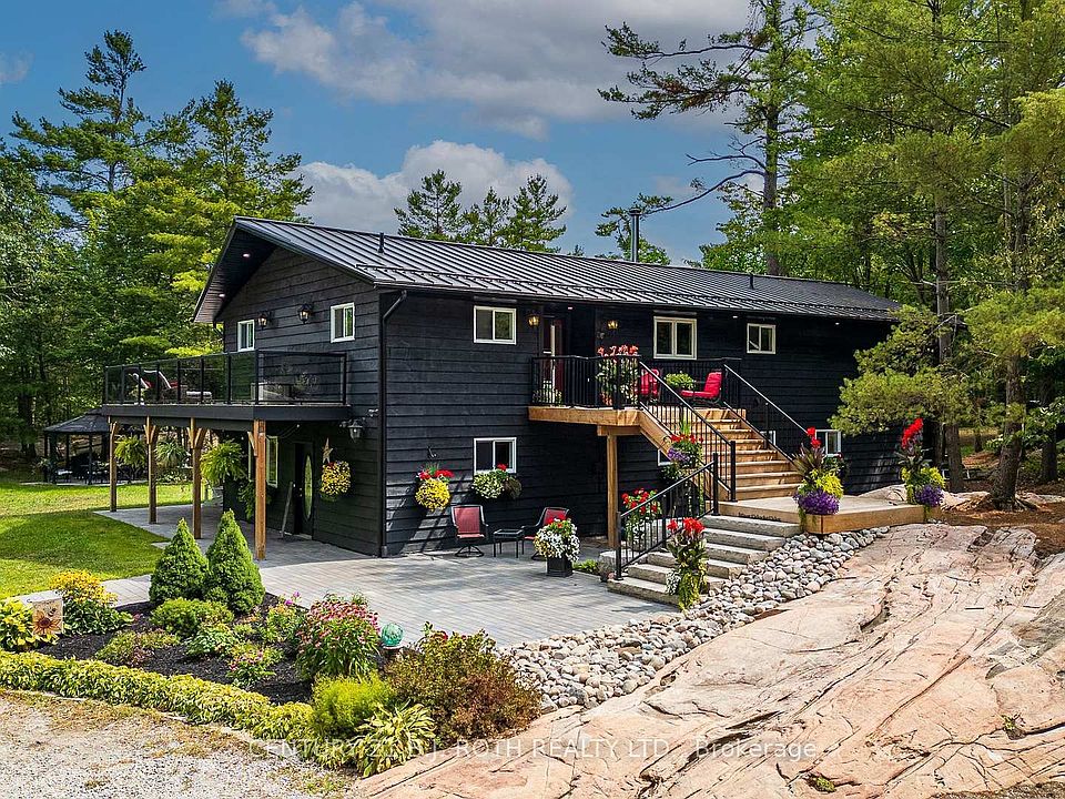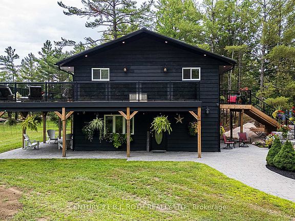 Exceptional All-Season Retreat on the Severn River (Green) in Washago Discover the perfect balance of natural beauty, modern comfort, and versatile living in this raised bungalow, nestled on nearly 10 acres along the sought-after Green River. With breathtaking granite outcroppings, towering trees, and almost 39 km of boating, kayaking, and paddle boarding right from your doorstep, this property is designed for those who value privacy, recreation, and connection with nature. Inside, the home is equally impressive. The upper level offers three spacious bedrooms, including a luxurious primary suite with a spa inspired ensuite featuring a freestanding tub. A second full bathroom serves the additional bedrooms. The heart of the home is the custom chef-inspired kitchen, seamlessly flowing into open-concept living space anchored by a warm wood-burning fireplace, perfect for entertaining or cozy evenings. The lower level is ideal for multi-generational living or hosting guests, with two additional bedrooms, a full four-piece bathroom, and a custom summer kitchen. A propane fireplace adds ambiance, while walkouts lead to exceptional outdoor living areas. Step outside to enjoy approximately 1,800 sq. ft. of patios, two fire pits, and a charming bunkie with sauna by the river, an ideal retreat after a day on the water. A large heated detached shop with separate 4 year old propane furnace provides endless opportunities for hobbies, storage, or a workshop. The massive deck has glass railings as to not impede on the beautiful view. Brand new standing seem roof, soffit, facia and 200 amp electrical panel. Whether you're seeking an all-season cottage, a private family compound, or a multi-generational home, this rare Washago offering combines lifestyle, comfort, and endless possibilities.
