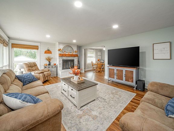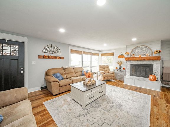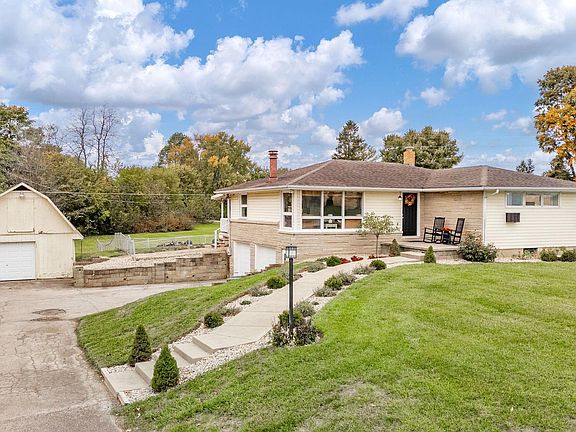 Charming 3-bedroom home! The curb appeal will immediately catch your eye. Walk in the front door to a bright, spacious living room that centers around a marble-tiled fireplace, creating a warm, inviting focal point. The eat-in kitchen has been thoughtfully updated with custom cabinetry, tile backsplash, and quartz countertops, offering both style and functionality. Down the hall, the three bedrooms and full bathroom feature thoughtful, modern finishes. The master bedroom is spacious and includes two large closets.The full basement includes an attached two-car garage with a dedicated workspace and two additional rooms—ideal for storage, hobbies, or a home office. Outside, unwind on the covered back porch overlooking the yard. The large outbuilding provides even more workspace plus a loft for storage or extra projects.