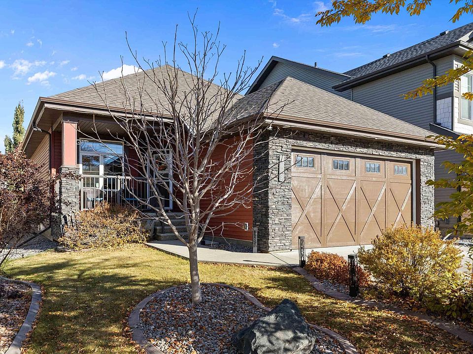 Rare bungalow opportunity built by Coventry Homes in sought-after Walker! The spacious main floor offers a large den, laundry, and a luxurious primary suite with a soaker tub, separate shower, and walk-in closet. The chef’s kitchen features granite counters, a gas stove, and corner pantry, flowing seamlessly into the living room with a cozy stone faced gas fireplace. The finished basement impresses with 9’ ceilings, a family room with a second fireplace, two large bedrooms with full-length closets, and a 4-piece bath. Enjoy outdoor living on the huge 32’x14’ two-tier deck, with a hot tub pad and wiring, 8’x10’ matching shed with workbench, and a gorgeous landscaped yard with poured curbing, backing onto a walking trail. Extras include central A/C, tankless hot water tank, high-efficiency furnace, central vac, built in speakers, and double attached garage. Fantastic location just minutes to shopping, groceries, and EIA, on a quiet local traffic only street.