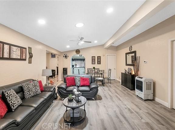 Welcome to this great opportunity in the Stonegate community! This single family home features 4 bedrooms plus 2 bathrooms with 1520 SF of living space. The well designed floor plan includes a formal living room with vaulted ceilings, an additional bonus room, dining area, and an indoor laundry room. Additional features include wood like vinyl flooring throughout, newer exterior paint, and it includes an attached direct access 2-car garage with storage space. This home has a private backyard with the view of the hillside. With its shade cover and freshly planted trees it makes this outdoor space perfect for outdoor dining and entertaining. Stonegate community has a low HOA and offers a large pool, spa, play area, a work out gym, and a low fee RV Parking area. Located minutes from the 5 Freeway, Castaic Shopping Village, Restaurants, schools including the new Castaic High School, and outdoor activities. Make an appointment to view today!