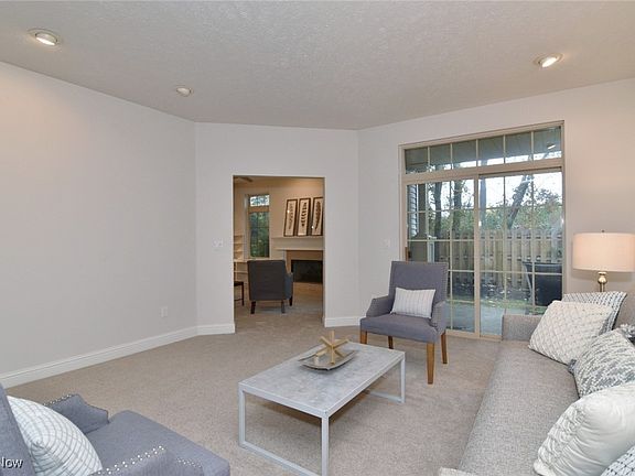 Welcome to this easy access 1st floor ranch style, lovely 2 bedroom, 2 full bath townhome/condo at the sought after Wedgewood Crossing in Beachwood. Large foyer (14x6) leads to an open and spacious living and dining room. The living room has a sliding glass door which opens to a covered patio and backyard setting. The kitchen is bright with white cabinets, gas cooktop, wall oven, pantry, ample storage and counter space. The kitchen has bar height seating connecting to the family room with a gas fireplace and built-ins. The family room opens to the rear porch and backyard. Terrific primary bedroom with built-ins, features large full bathroom (13X10) with two sink vanity, stall shower and soaking tub, 2 spacious custom closets including walk-in closet (9X7) and 2nd closet (5x4). The primary bedroom also opens to the rear patio. The townhome features a 2nd bedroom and full guest bathroom with tub/shower. Convenient laundry room off the kitchen and attached garage. New carpeting (10/2025), hot water tank (12/2024), furnace & AC (8/2021). Guest/visitor parking nearby. Ideal location - close to schools, shopping, groceries, restaurants, medical facilities, parks and freeway.