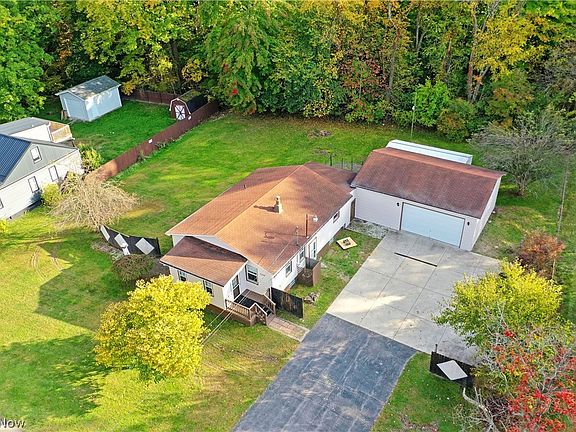 Welcome home to this updated 2-3 bedroom ranch with walkout basement and 4 car garage! Garage is perfect for a mechanic with its own electric panel and 220 hookup. New flooring throughout and freshly painted outside and inside. As you enter through the front door, there is an enclosed finishes porch that can also be used as an office. Through the door, you enter into the living room and then to the eat in kitchen. Bathroom is updated and 2 bedrooms on first floor. Going down into the walkout basement there is additional living space with possible 3rd bedroom, a shower and a family room with a ventless gas fireplace that can be hooked up. 2 laundry hookups in the basement. Out the back door through the kitchen is a 3/4 enclosed porch that could be completely enclosed and leads to a 4 car garage with electric. Behind the garage is a shed. The backyard is private with a wooded view for relaxing or entertaining. Furnace 12 years old, roof 10 years old, hot water tank and ac 5 years old. H