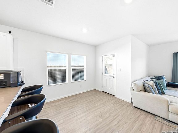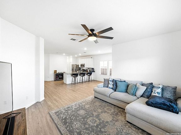 The seller will assist with buyer's closing costs with the right offer! Plus lender incentives towards buyer's closing costs! BIG SAVINGS ON MONTHLY MORTGAGE PAYMENTS! Welcome to 31940 Native Sun Rd, Bulverde, Texas - a beautifully maintained 3-bedroom, 2-bath brick home offering 1,608 sq ft of smart, stylish living space that blends comfort, function, and elegance. This home features a bright open-concept floorplan with a seamless kitchen and living room combo, perfect for entertaining, relaxing, and everyday living. The kitchen opens directly to the living area, making the space feel wide, airy, and welcoming. The primary bedroom is privately located in the back of the home and includes a gorgeous en-suite bathroom with double vanity sinks, tile finishes, and a spacious walk-in closet for convenience and comfort. Two additional bedrooms offer flexibility and functionality, with one bedroom perfectly suited as a home office, guest room, or creative space. The kitchen features beautiful cabinets, quartz countertops, energy-efficient appliances, including a dishwasher, microwave, and stove, plus a spacious pantry for extra storage. Outside, enjoy a flat, private backyard ideal for gatherings, pets, relaxation, or gardening, enhanced by a full sprinkler system. This home is truly move-in ready and has been very well maintained. Additional highlights include fiber-optic high-speed internet, a garage door opener, and a strong brick exterior for timeless appeal and durability. Washer, dryer are negotiable with the sale. COMMUNITY: Imagine living in a RESORT STYLE COMMUNITY where every day feels like a vacation! Experience modern living with amenities like a stunning infinity pool, a brand-new Junior Olympic-sized lap pool, and a splash pad for kids. Access a contemporary clubhouse, a well-equipped 24/7 gym, a fitness center, and enjoy yoga classes. Discover miles of scenic walking and biking trails and access to the dog-friendly Kleck Park. Challenge friends to basketball, host BBQs, or spend quality time with your children on multiple playgrounds, where one features an exhilarating zip line, while the other offers diverse play options! Join an engaging community center hosting live music, events, and food trucks. Relax by the catch-and-release fishing pond. Hidden Trails offers a vibrant lifestyle with endless possibilities! LOCATION: Hidden Trails subdivision provides convenience, located just off Highway 281, with a few minutes drive to nearby shopping at HEB and Walmart, as well as Starbucks, restaurants, and medical facilities. All your daily needs are within easy reach. The San Antonio Airport is a mere 30 minutes away. Additionally, the stunning Canyon Lake is just a short 20-minute drive.