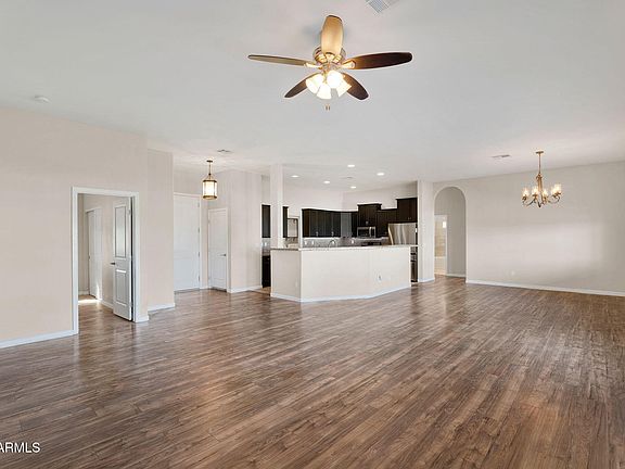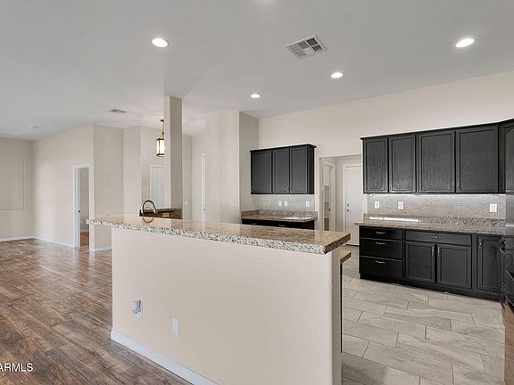 This beautifully maintained ranch-style home sits on 1.25 acres with a warm, inviting color palette and wood and tile flooring in all the right places. The open-concept kitchen is designed for both function and style, featuring custom cabinetry, granite countertops, and stainless-steel appliances. The home offers spacious guest bedrooms with ceiling fans, plus a full guest bath with a dual-sink vanity. The primary suite includes a roomy walk-in closet and a spa-like ensuite retreat. Car lovers and hobbyists will love the oversized 3-car garage (25' deep by 38' wide). Outdoors, the expansive backyard showcases a covered patio, and endless mountain views—a perfect setting for family BBQs, entertaining, or simply enjoying Arizona sunsets. With space for all your toys and plenty of room to grow, this home checks all the boxes. Don't miss it, this one will move fast!