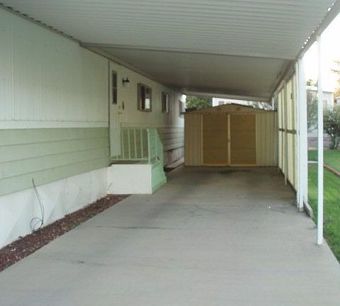 Wonderfully LANDSCAPED lot with home in Pioneer Village (55+ community). In great shape with NEWER carpet! Open design, and wheel-chair accessible inside the home (might need a ramp outside). Includes WATER FILTER. Both bedrooms have their own bathrooms - one enters from inside the bedroom, one right outside the bedroom door. NEAT and VERY CLEAN! Extra long carport with LARGE shed. HUGE COVERED PATIO! Visitor parking spaces right across the street. TIMED sprinkler system. HOA fees pay for water, sewer, trash and common area maintenance. Come quick!