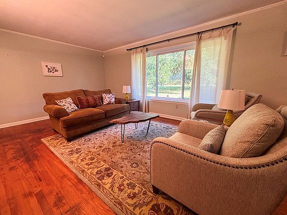 Charming and very well cared for brick farm house with over 2300 sq ft heated, 4 bedroom with 2 bath and 3rd bath option. Interior also offers 2 living areas, wood burning insert, fresh paint, remodeled kitchen with granite counters and stainless appliances. Exterior will not disappoint either with 5 acres offering wonderful shade, elbow room, pasture for cattle or horses. Put this on the list today!