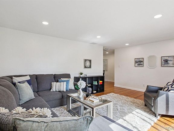 Welcome to this timeless mid-century ranch, originally built in 1958 by well-known Denver developer Ted Hutchinson. With its low-maintenance, all-brick exterior, the home combines classic Hutchinson craftsmanship with modern enhancements for today’s lifestyle. The main level features two bedrooms, including a private primary suite with its own bath and walk-in closet. Original hardwood floors are complemented by luxury vinyl tile, balancing vintage character with durability. The beautifully remodeled kitchen offers a dedicated dining area and modern upgrades. Upgraded double-sliding, sound-dampening windows ensure year-round comfort through the entire home. The finished basement includes two additional bedrooms, a ¾ bath, and a spacious family room, ideal for guests or extended living. French doors open onto a covered patio that overlooks the expansive backyard, perfect for entertaining or quiet relaxation. Ideally situated with convenient access to Denver International Airport, Buckley Space Force Base, I-70, I-225, and just minutes from Anschutz Medical Campus and Stanley Marketplace, this home truly delivers both charm and convenience. Don’t miss the opportunity to own a classic piece of North Aurora living.