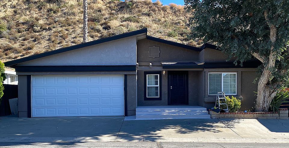CASTAIC Home located in the community of Stonegate with its beautiful views of the surrounding mountains. Here are just a few of its features: 1,020 square feet of living space nestled on a good size square foot lot. A bright and open floor plan. Brand new dark wood flooring on 2 bedrooms, living room and dining room. White french door leading to the part cemented and garden backyard with hill view and a palm tree. Beautiful fixture in dining area, and modern ceiling fans in all other rooms. The living room is bathed in natural light and accented by showcase shelving for your decorative items,The kitchen is graced with white patterned tile, abundant cabinets, tile floor and a view. Master bedroom has large mirrored closet, sliding door leading to the patio with view of the hillside, private bathroom with tile floor, abundant storage, and etched glass tub enclosure. Second bedroom is spacious with mirrored wardrobe, and panel doors. Convenient indoor laundry room. Central heat & air. 2 car attached garage with direct access. You are going to spend countless hours enjoying the community pool, spa, and large recreational facility. A 5-minute walk to the beautiful lake. Call now for all the details and arrange your private tour.Buyer to verify lot size information.