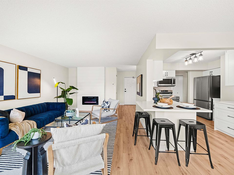 Spacious open-concept layoutQuartz countersCustom cabinetryNew stainless appliancesLaminate flooringSpa-like bathsIn-suite laundry