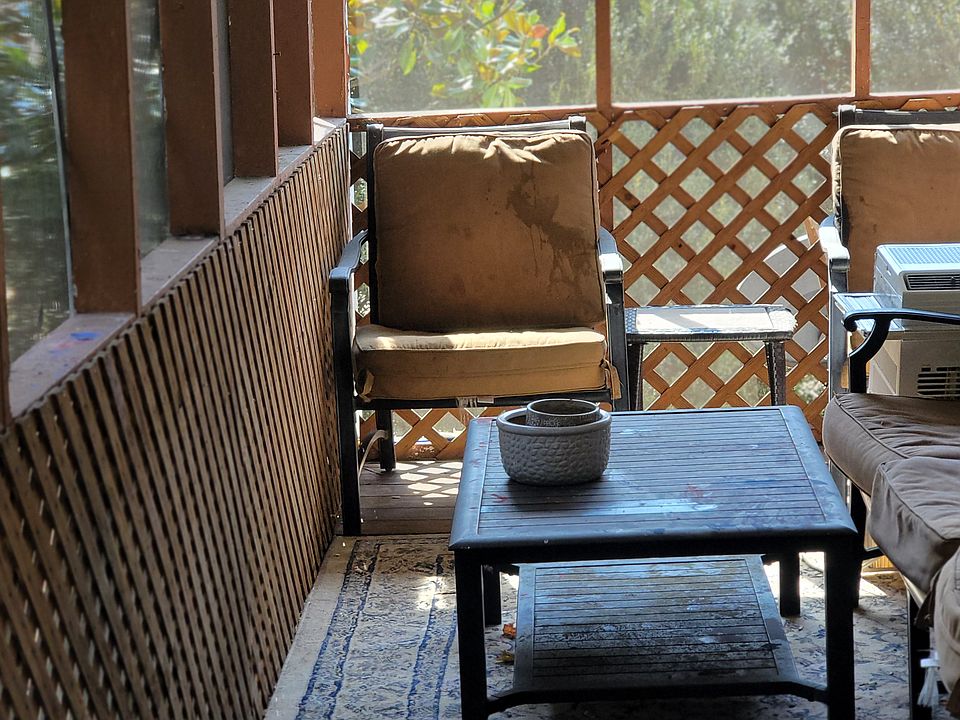 Private parkingPropane heatEnclosed screen in deckLarge kitchenCellar for storageDining room
