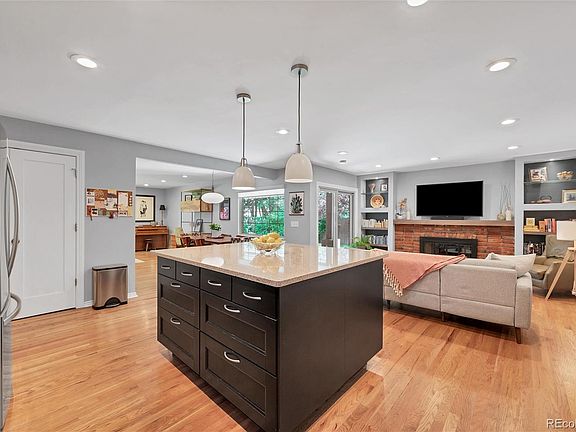 This beautifully remodeled and meticulously maintained home blends timeless character with modern comfort, offering exceptional flow, thoughtful updates, and stunning outdoor living spaces. Step inside to discover gleaming hardwood floors throughout the main level and a spacious open floor plan ideal for everyday living and entertaining. The kitchen is the heart of the home, featuring a large island, ample cabinetry, a generous walk-in pantry, and seamless connection to the cozy TV room with a gas fireplace, custom built-ins, and elegant mantle. Formal living and dining areas complete the main living space, offering flexibility for hosting or relaxing. The main level hosts a primary suite, a true sanctuary with a spa-inspired ensuite bath, two additional bedrooms that share a beautifully remodeled bathroom with a skylight. The finished basement adds valuable living space, with a conforming bedroom featuring a large egress window, a private bathroom, a versatile bonus area perfect for crafts or a home gym, and a convenient laundry room. Outside, you’ll find a gorgeous, private backyard oasis designed for relaxation and entertaining. The expansive covered patio boasts separate areas for dining and lounging. Enjoy the irrigated raised garden beds planted with fresh herbs, strawberries, and tomatoes! Additional highlights include an oversized two-car garage with epoxy floors and abundant storage, newer water heater, beautiful lighting fixtures and window coverings as well as ample storage throughout including IKEA closet systems in the main level bedrooms. Fully owned solar panels offer low summertime energy bills. Easy access to I-25, Highline Canal, Bible Park, local shops, restaurants and amenities. This home exudes character, warmth, and ease of living—whether you're hosting friends or enjoying a quiet evening under the patio lights, this is the perfect place to call home.