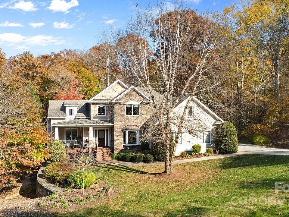 This beautifully maintained 4-bedroom, 3 full and 2 half bath home offers over 4,400 sq ft of elegant living space. Nestled on 2.25 acres of lush landscaping with peaceful creek frontage, it combines classic charm with modern convenience. The two-story living room flows effortlessly into the heart of the home, while the main-level primary suite boasts a spa-like, luxurious bath & shower.. The finished walk-out basement features a large family room, game area, guest bedroom with full bath, and is prepped for a future kitchen—perfect for guests or multigenerational living. Highlights include a home theater, a FROG/bonus room, and several outdoor living spaces, including a saltwater hot tub and firerock with a trickling water feature. This serene retreat is conveniently located near Hwy 16, Hickory, Mooresville, and Charlotte, with Mountain Creek Park less than a mile away and close to Hwy 150 Marina. Once you see this enchanting property, you may never want to leave!