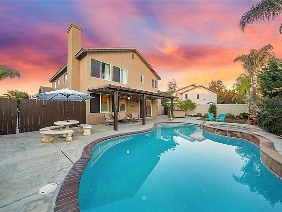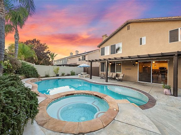 Located in the highly desirable Temecula Valley Unified School District and walking distance to La Vorgna Elementary, this spacious 5-bedroom, 3-bathroom home sits on a quiet cul-de-sac and offers everything today’s buyers are looking for. Enjoy the convenience of a main-level bedroom and full bathroom—perfect for guests, multigenerational living, or a home office. The open-concept layout features laminate flooring throughout the main level, tile in high-traffic areas, and abundant natural light. The remodeled kitchen is ideal for entertaining, complete with a large granite island, eat-in dining area, all-new white cabinetry, pendant and recessed lighting, and stainless-steel appliances—including a convection oven and top-of-the-line stainless refrigerator (included in the sale). The kitchen flows seamlessly into the family room, creating an inviting and functional space.Upstairs, you’ll find four additional bedrooms and two full bathrooms, offering privacy and comfort for the whole family. Step outside to your own private retreat: a sparkling pool and relaxing spa, a peaceful and private backyard, and a covered Alumawood patio with ceiling fans, a built-in BBQ, and plenty of yard space. Additional highlights include a 3-car garage and gated RV parking, ideal for families with toys, trailers, or work vehicles. Located in a low-HOA community with beautifully maintained parks and just minutes from Temecula’s world-famous wineries, shopping, and dining. Brand-new pool/spa heater. Refrigerator and dryer included. Some photos are virtually staged.This one checks all the boxes—space, location, schools, and lifestyle. Don’t miss it!