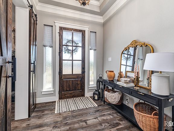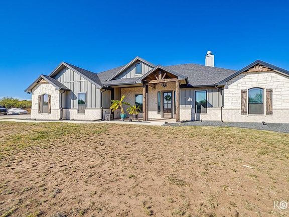 Stunning Modern farmhouse on 3+ acres with gated and fully fenced front entrance! This custom home offers open layout with vaulted ceilings, exposed beams, beautiful vinyl plank flooring and gorgeous stone fireplace. The Chefs kitchen features a huge granite island, custom cabinets, farmhouse sink, double ovens and a dream pantry with built in bar shelving. The primary suite has dual vanities, soaking tub, make up area and walk through shower! Enjoy the oversized covered patio with wood ceilings and peaceful views. Plenty of space for a shop, animals or even a pool! Luxury, privacy and acreage all in one!