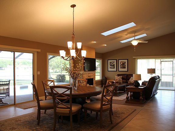 Impressive pool home nicely situated on a waterfront cul-de-sac lot in Spruce Creek Fly In. This property features 3 bedrooms 2 full bath & screened lanai with pool. Updated Open concept with volume ceilings, sky lights, fireplace and large bay windows with gorgeous views. Kitchen offers plenty of cabinets/counter space and eat-in dining area. Spacious master bedroom with sliding glass doors to the pool/lanai. Master bath includes double sinks, separate shower, privacy room and walk in closet. New A/C 2018. New Roof 2014. New Pool Pump 2020 THIS IS A MUST SEE! CALL TODAY!