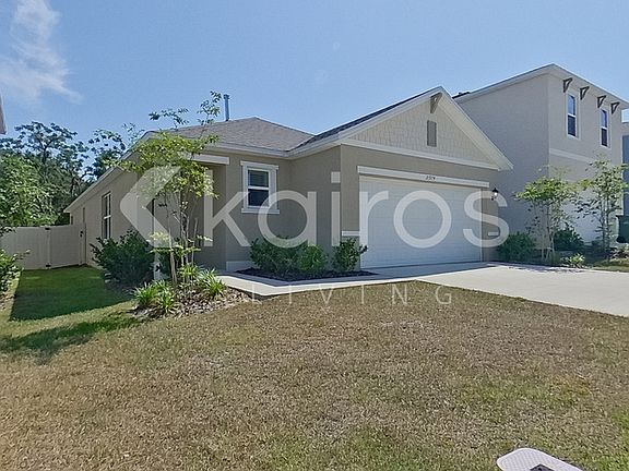 Welcome to Lake Griffin Reserve! This brand new single-family home in Leesburg offers 3 beds, 2 baths, a modern open floor plan, primary suite, granite countertops, fenced-in backyard, and two-car garage. A monthly $115 amenity fee includes lawncare. The neighborhood is located just 6 minutes from downtown Leesburg restaurants and 15 minutes from Lake Griffin State Park. Kairos Living is cat and dog friendly and is happy to provide long-term leases and 24/7 Emergency Maintenance! Please see last photo in reel for all applicable DISCLAIMERS. Visit our Kairos Living website to tour this home on your schedule with our "Self Tour" feature and apply today!