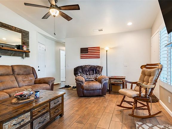 Welcome to Barclay Square, a Beautiful Gated Community where this Single-Story Corner Lot in a Cul-De-Sac home has been Completely Upgraded and Lovingly Maintained. Mature Trees Provide Wonderful Shade in Both the Front and Back Yards, Creating a Private and Inviting Setting. The Porcelain Wood-Look Tile Throughout, a Remodeled Kitchen with Custom Cabinets, Granite Countertops and Stainless Steel Dishwasher, Oven/Cooktop, Microwave and Counter Depth Refrigerator are just a Few of the Upgrades. The Kitchen has an Eating Area with a Fandelier and Shutters and Opens to the Living Room. The Living Room is Cozy with a Gas Fireplace. The Hall Bathroom has a Vanity with Storage and a Tub/Shower Combo. Bedrooms 1 and 2 Feature Ceiling Fans, Shutters and Mirrored Closet Doors. The Primary Bedroom is Good Sized with the Primary Bathroom Attached that has a Custom Sized Shower, Dual Sinks, Vanity with an Abundance of Storage and Mirrored Closet Doors. The Sliding Door to the Back Patio Area has Great Afternoon Shade from Mature Trees and is Easy to Enjoy. The Air Conditioner is Daikin, there is a Nest Thermostat and the House has a Puragain Water Filtration System. The Garage has a LiftMaster Garage Door Opener and Built in Storage and Space for the Washer and Dryer. The HOA Maintains the Front Yard. This Home Truly Checks all the Boxes so Call and Schedule Your Private Showing Today!