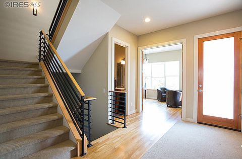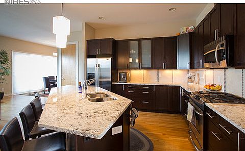 Contemporary and Modern home with Flatirons views. Custom design that features and open and spacious floor plan with gourmet kitchen, luxury master suite and an oversized tandem garage. 3 bedrooms and laundry upstairs and a 4th bedroom/office on the main level. Enjoy the flatirons view from the 18' x 6' deck off of the Master Suite. The rear deck off the great room has a SunSetter awning to allow for summertime meals and enjoyment of the views. Built Green, RO filter and Energy Star.