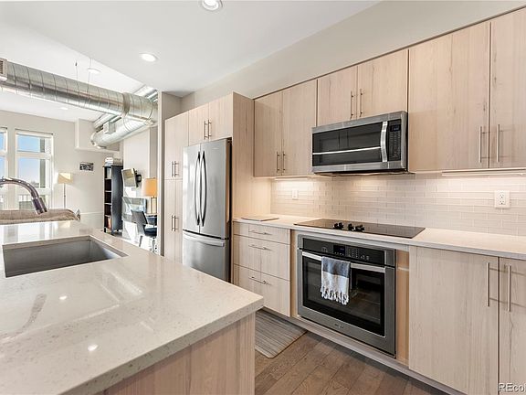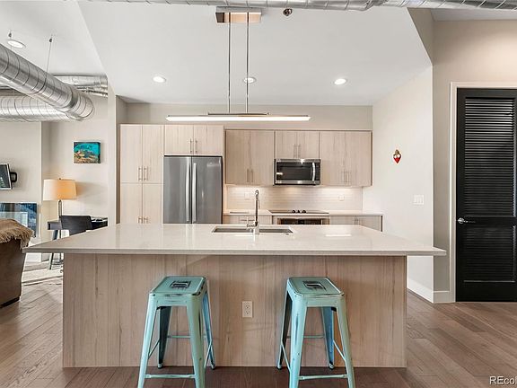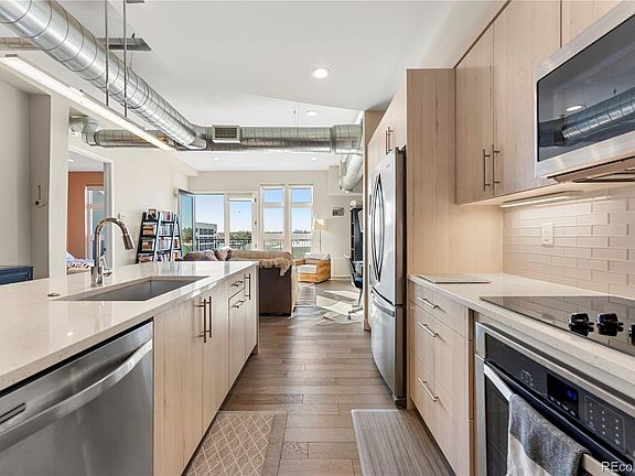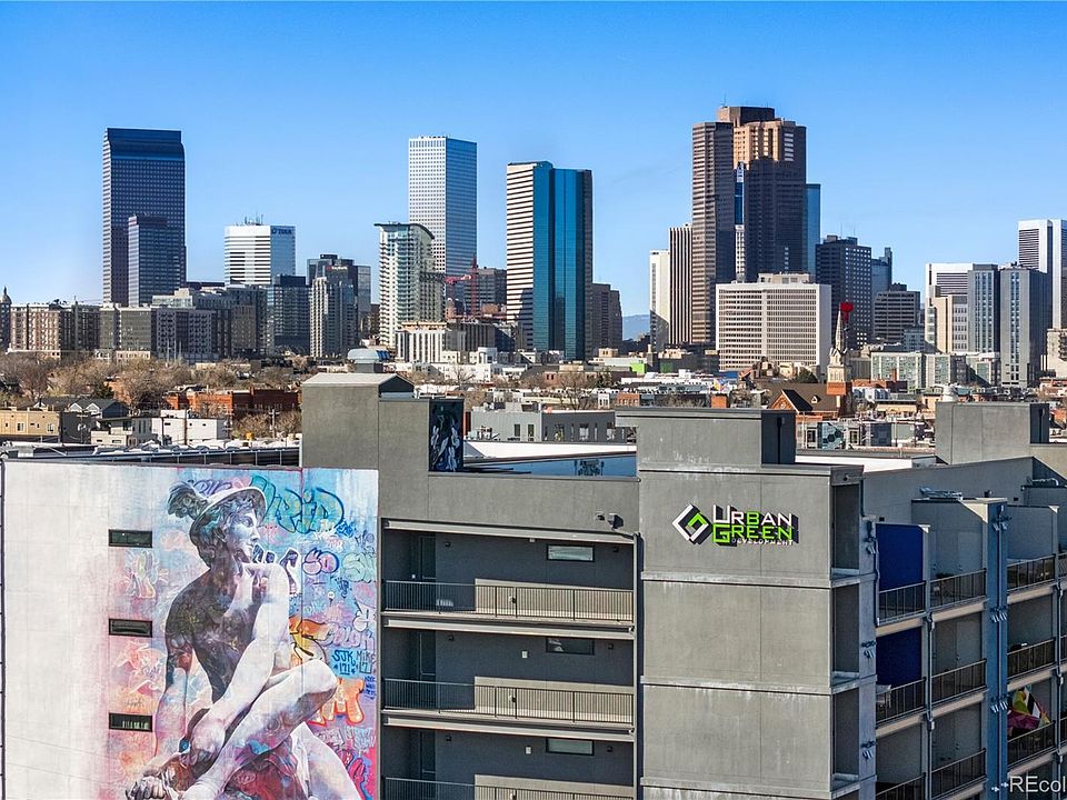 Step into the embrace of Unit 505 at 3198 Blake Street, a top-floor sanctuary boasting a deeded parking space in the heated garage, situated in Denver’s pulsating RiNo district. This LEED Platinum-certified building sets the standard for sustainable living, right in the heart of vibrant art, dining, and unique boutiques, with ample connectivity to the RTD train and downtown. As you step into this urban retreat, the bright and spacious foyer greets you, basking in the abundant natural light that fills this unit. The sleek kitchen awaits - a modern cook's dream with stainless steel appliances, minimalist cabinetry, and premium Quartz countertops, leading seamlessly to the inviting dining area. Beyond that, the airy living room invites relaxation, anchored by a sleek electric fireplace and wall-to-wall windows that ensure a luminous ambiance. Step outside from the living area onto the expansive private patio, a versatile extension of the living space, perfect for al fresco dining or soaking in the city views from your private oasis. The tranquil primary suite offers restful repose, complete with a luxe en-suite bath and a large walk-in closet. The secondary bedroom, versatile in nature, functions beautifully as a guest room, home office, or workout space, equipped with a convenient closet and served by an adjacent 3/4 bath. Practicality is woven into the design with an efficient laundry area. Crowning this urban dwelling is the rooftop patio, providing panoramic views that celebrate the Colorado skyline. Living in RiNo places you at the crossroads of culture and convenience, where every street corner buzzes with life and every amenity is just a stone's throw away.