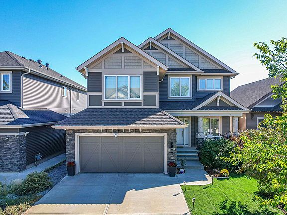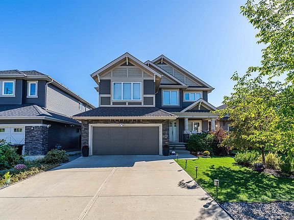 Welcome to Aurora, the premier community of Walker Lakes. This 2,980 sq ft 2-storey home offers a walkout basement backing directly onto serene ponds, fountains, and the walking trail. The main floor features warm hardwood throughout, a spacious den, formal dining room, and a stunning great room with a gas fireplace and expansive picture windows capturing peaceful water views. The chef-inspired kitchen includes dark wood cabinetry, granite countertops, corner pantry, and high-end stainless steel built-ins. A generous boot room/laundry area offers the perfect opportunity to design a custom family space. Upstairs you’ll find a large bonus room, an impressive primary suite, a second den, two additional bedrooms, and a full 4-piece bath. The walkout basement remains unspoiled and ready for your future vision. Located in one of Edmonton’s most sought-after communities and priced to sell, this exceptional home offers incredible value—act quickly!