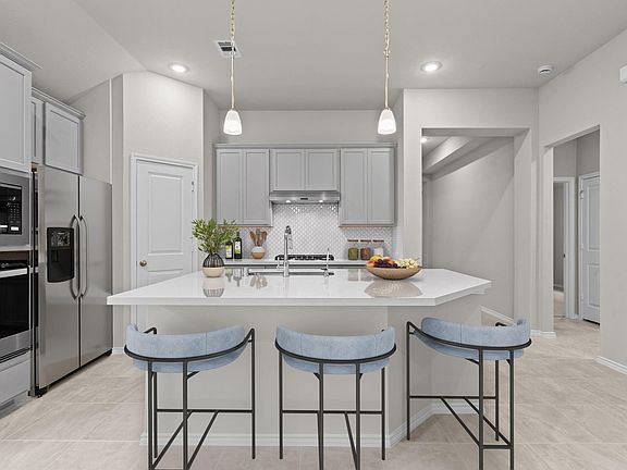 This elegant 1-story, 3-bedroom home is located in the highly sought-after community of The Meadows at Imperial Oaks. As you enter, you are welcomed by a grand foyer with soaring 10-foot ceilings and an impressive tray ceiling entry. A versatile flex room, perfect for a study, is conveniently situated to the side and features a ceiling fan and stylish glass doors. The heart of the home is the stunning kitchen, complete with granite countertops, a sleek tile backsplash, 42-inch cabinetry, and a USB outlet for modern convenience. The primary bedroom serves as a serene retreat, with a unique bowed window that adds a touch of elegance. Step outside to the Texas patio, designed for grilling and spending quality time with loved ones. This home is built with energy efficiency in mind, ensuring both comfort and peace of mind for you and your family. Don’t miss out—schedule a tour today and see what this exceptional home offers!