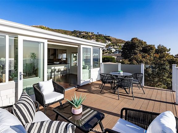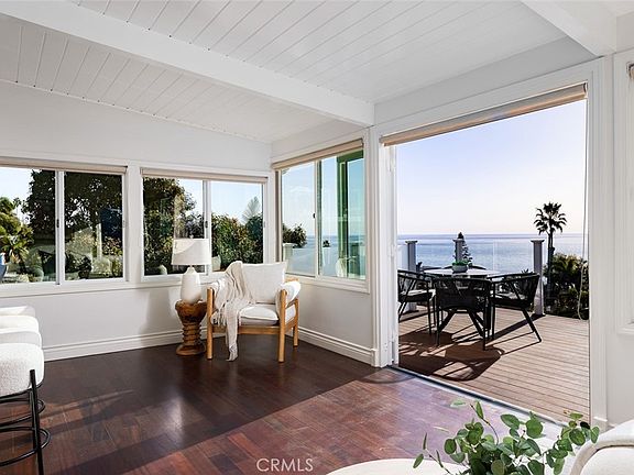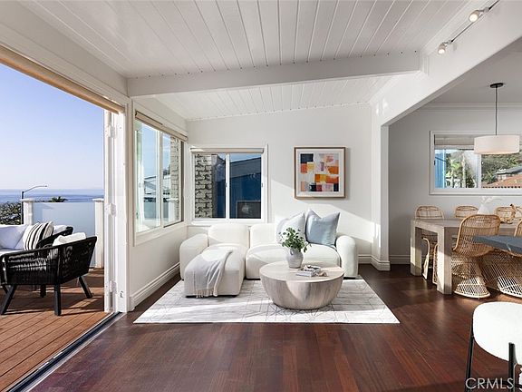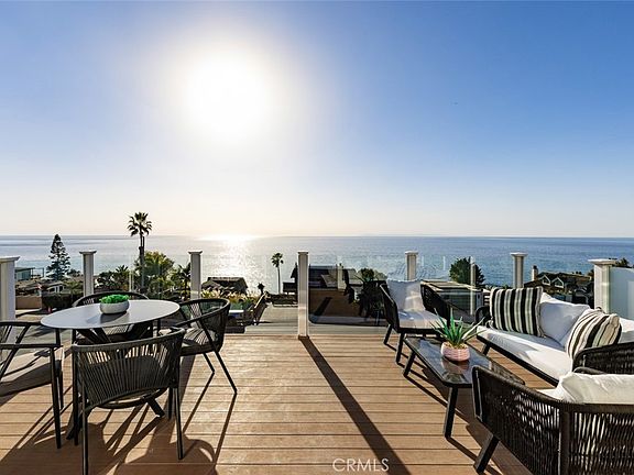 Enjoy panoramic ocean and Catalina Island views with year round sunsets from this immaculately maintained 3 bedroom, 4 bath home located in the quaint village of South Laguna. Just steps from renowned Thousand Steps beach, you’re welcomed to this beautiful home through a private garden patio with mature lemon, orange and avocado trees, a sparkling water fountain and a charming Dutch door. Enter into the large living room with gas fireplace, soaring ceilings and abundant natural light. A few steps lead to a spacious dining area, second living room and updated gourmet kitchen with custom tile work by Laguna Beach local artist, all extending to a large deck to relax and enjoy breathtaking ocean views. The lower level offers three generous bedrooms, two bathrooms and laundry, plus direct access to the backyard garden with additional living space for a home office or guest room with a private bathroom and separate entrance. The primary bedroom has ocean views and triple paned windows for peaceful rest, plus an updated en-suite bath with walk in shower. Dedicated parking for two cars is included, with additional spaces available at the beachside entrance. This home is the definition of Southern California indoor-outdoor living at its finest, close to the South Laguna community garden, renowned beaches, art galleries, restaurants, shopping, and acclaimed hiking and biking trails right outside your front door. Make this your time to experience the true Laguna Beach lifestyle.
