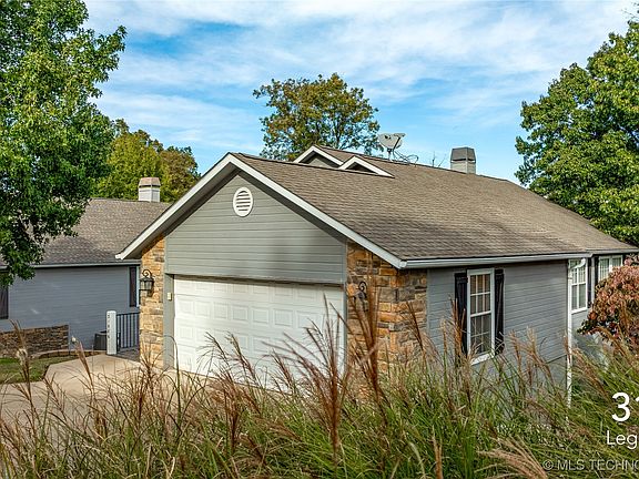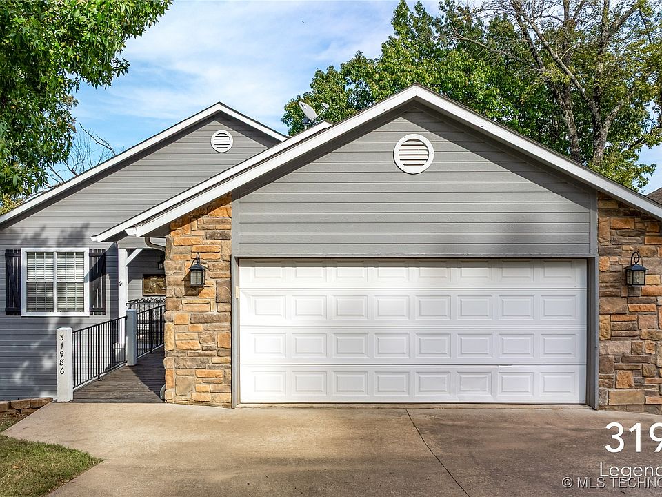 Welcome to The Vintage - a beautiful, gated community at Grand Lake where residents enjoy top notch amenities such as 24/7 security, a swimming pool, pickleball and basketball courts, walking trails, and private boat ramp! Each home comes with its own private boat slip and jet ski slip with easy access to the water. Dock cleaning and maintenance is also included. This home is ideal for making the most of Grand Lake living! The inviting open-concept layout features rich hardwood floors, a cozy stone fireplace, and vaulted ceilings with wood beam accents. The spacious kitchen features warm wood cabinetry, stainless steel appliances, and a large island with plenty of room for entertaining. The adjoining dining area and living room are surrounded by windows, allowing for abundant natural light and peaceful views. The home features two bedrooms and two full bathrooms on the main level, plus a flexible lower-level room that can serve as a third bedroom, game room, or guest suite. The additional space includes a mini kitchen with a sink, microwave, and beverage fridge, making it ideal for entertaining or accommodating visitors. The covered deck is perfect for relaxing or dining outdoors.