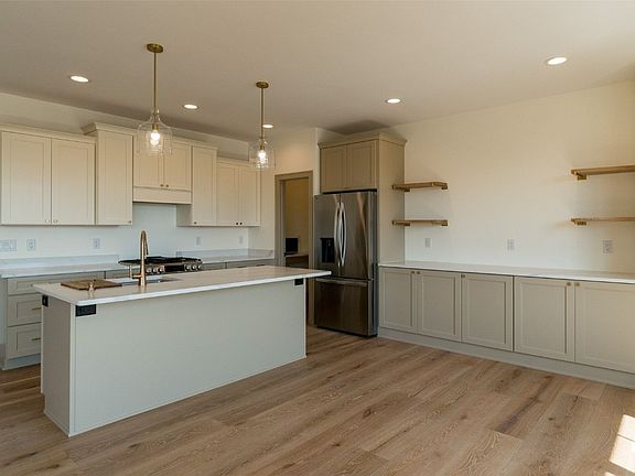 One of a kind new construction home just completed. Large main floor living area includes 10" European White Oak floors, board and batten fireplace with built-in cabinet, and tray ceiling. Kitchen includes quartz countertops, gas range, large built-in sideboard with white oak shelves, and a large pantry with quartz countertops. Larger Primary suite with tray ceiling, large format tile shower, quartz countertops, and large master closet. Along with two additional bedrooms, the main floor has a laundry room equipped with custom lockers and a desk that can be used as a home office. Nine foot walkout basement includes a large living room, dry bar, two bedrooms, one bathroom. One bedroom is extra large measuring 15x22, which can serve as a home gym, play room, senior suite, or converted into two bedrooms for an additional cost. Other highlights: central vac roughed in, tankless water heater, extra deep 3 stall garage.