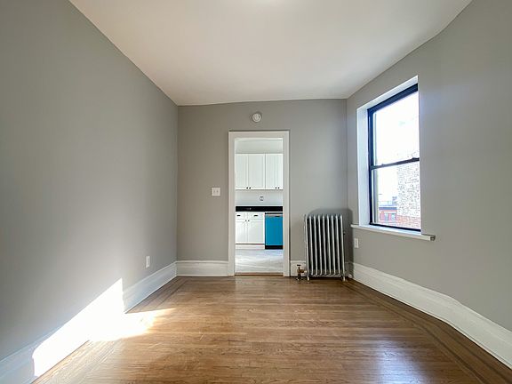 Nice size bedroomStainless steel appliancesQuartz countertopsBrand new kitchenSpacious clean bathroomWhite cabinetryBeautiful pre war building
