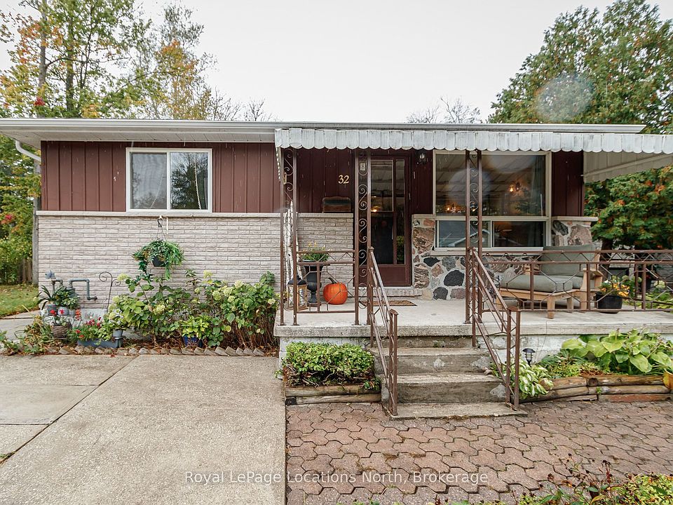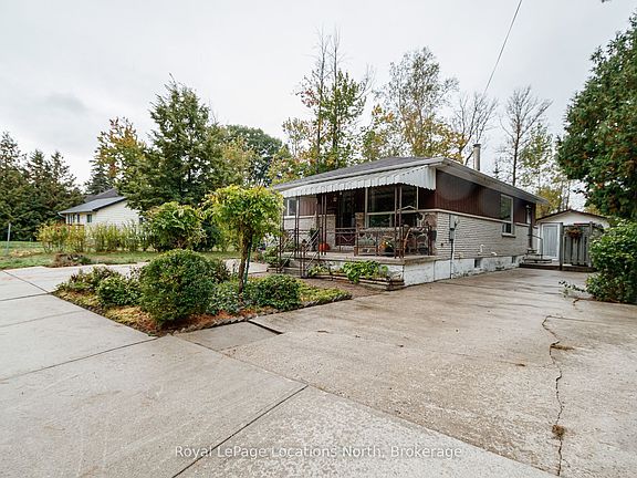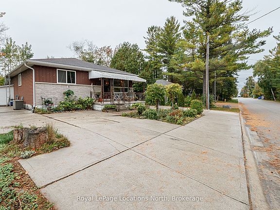 Cozy raised bungalow with 3 bedrooms and 2 bathrooms on a quiet dead-end street, located minutes away from the world's largest freshwater beach. As you drive up and park in one of your 4 parking spots in front of the house or at the side driveway, you are greeted with a covered front porch to sit in the shade or watch the storms roll in. The large lot (70 x 147 ft) allows for future expansion. There is also an outer building that can be used as a workshop or a playhouse for the kids. At the back of the spacious backyard is another shed for your gardening and storage needs. The unfinished, partial basement has a separate entrance that allows for convenient access for further storage as well. From the largest of the bedrooms, there is a walkout to a covered backyard patio, providing a quiet sanctuary to escape to. The location is close to schools, shopping, and restaurants, and is conveniently situated at the west end of Wasaga Beach for quick access to the highway.