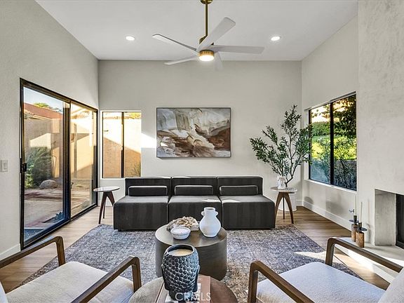 Welcome to Silver Sands Racquet Club, one of Palm Desert’s most sought-after tennis and lifestyle communities. This home comes FULLY FURNISHED TURNKEY, offering an effortless move-in experience. Step into your own private oasis—beginning with a gated courtyard featuring lush desert landscaping and a fully remodeled, built-in jacuzzi. This serene space sets the tone for the rest of the home. As you enter, a second private courtyard with additional seating creates a seamless indoor/outdoor flow.