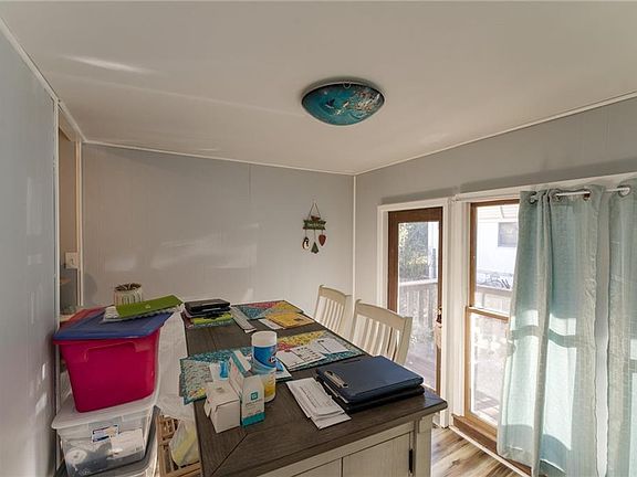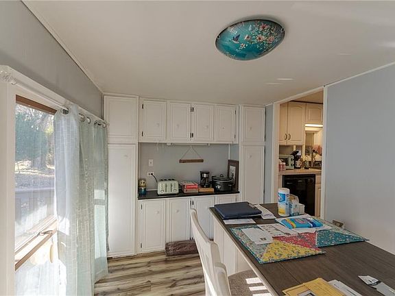 Single level living at its finest! This 1100 SF+ manufactured home features modern laminate hardwood-style flooring and updates throughout on a large lot with mature trees. The kitchen has lots of cabinet space, gas stove, and breakfast bar. An adjacent open space with large floor to ceiling windows has a convenient wall of cabinets for extra storage space and could easily be a home office or play space. A glass door off this space leads to a small, covered deck. Off the kitchen are 2 open areas for living and dining, plus sliding doors to a 3-season room with laundry. The first area is currently a living space but could easily become a formal dining space. Down a few stairs is the wide-open living area with large windows for tons of natural light. Down the hall are 2 spacious bedrooms & a full bathroom with marble-style counters & walk in shower. Outside, enjoy outdoor living on the second deck & a newer shed. Centrally located in Coventry, close to Rt 117, minutes from Tiogue Lake.