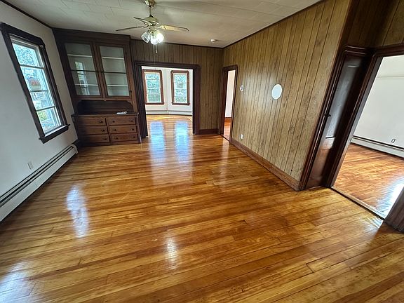 Large apartment on the third floor, sunny and bright. Large fenced in yard with off street parking. There is central baseboard heat.