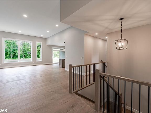 High-end appliances, a paved driveway, and a beautiful stone walkway are all included. Updated Photos Coming Soon. Live where others vacation in beautiful Horseshoe Valley, a four-season playground surrounded by nature, trails, and resort amenities. This custom-built bungalow is designed for those who crave space, style, and an unbeatable lifestyle. Step inside and feel the impact of soaring 12-ft ceilings in both the foyer and living room, offering a true sense of grandeur. Anchoring the space is a 12-ft stone fireplace, the perfect spot to cozy up after a day on the slopes. The open-concept layout flows seamlessly into a chef-inspired kitchen featuring quartz countertops, custom cabinetry and a spacious island perfect for entertaining.Off the main living area, step through patio doors to your covered outdoor patio with beautiful tongue-and-groove wood ceiling. Whether hosting summer BBQs or enjoying crisp fall mornings, this space is made for year-round enjoyment. The private backyard backs onto mature trees offering peace, privacy, and endless relaxation.For those who need room for toys, tools, and adventure gear, the massive 4-car deep garage with drive-thru rear door is a dream come true. Bring your ATVs,snowmobiles, bikes, boats there's space for it all.The real hidden gem is the unfinished basement with over 9-ft ceilings and a separate entrance- a blank canvas ready to become your dream in-law suite, income-generating apartment, or next-level entertainment zone. With roughed-in plumbing already in place, the possibilities are endless. This home also features a spacious home office, large main level laundry room, and three generous bedrooms including a luxurious primary retreat with walk-in closet and ensuite bath. Just minutes from Horseshoe Resort, Vetta Nordic Spa, golf courses, trails, ski hills, and endless outdoor recreation this is more than a home; it's a lifestyle. Come experience the perfect balance of elegance, function, and fun!