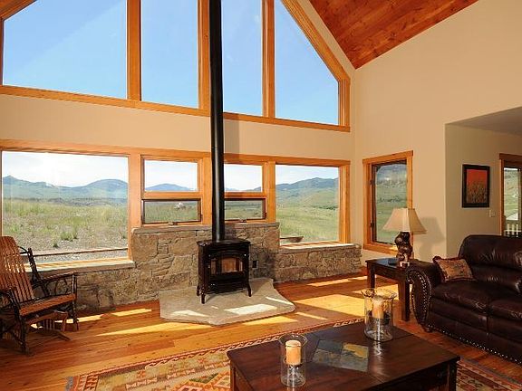 Beautiful home on 4.554 acres in the heart of Paradise Valley! Custom 2468 SF home on a sunny hillside with lots of windows to capture the amazing views. The home has 3 bedrooms and 2.5 baths plus a loft overlooking the great room. The great room has cathedral ceilings, a wood burning stove and is open to the kitchen and dining area. Outdoors there are decks on both sides of the home. The views are of the the high mountain peaks of the Absaroka and Gallatin Mountains, and down to the winding Yellowstone River. It's fully decorated and exceptionally furnished and may be purchased as a turn key vacation rental or second home. Priced at $510,000 if purchased fully equipped. 30 minutes to Yellowstone National Park or 35 minutes to Livingston.