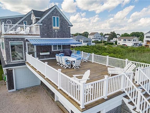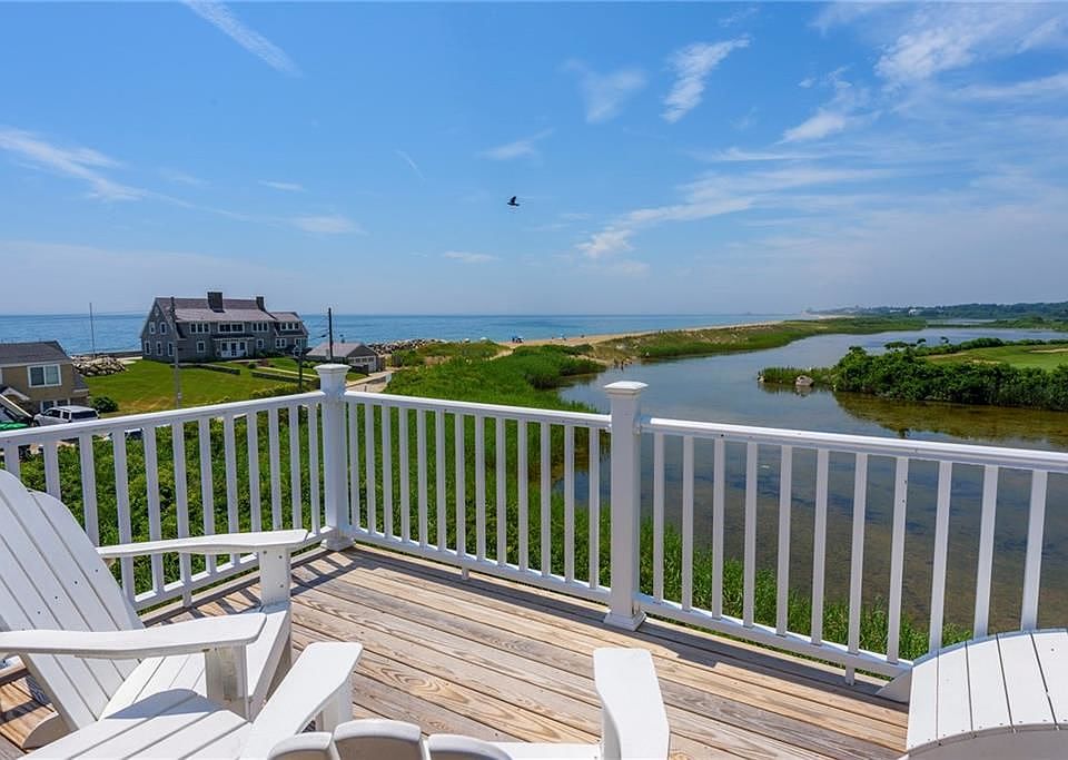 Spectacular location with unobstructed panoramic ocean and pond views from every room. This Shingle style coastal home overlooks Little Maschaug Pond and the Misquamicut Golf course with views of the Atlantic Ocean, Montauk and the Watch Hill Light House. With its open floor plan and large 33 x 20 deck this home is wonderful for entertaining. Pristine East Beach is steps from your door for enjoying a day at the beach, or for long quiet walks in the Fall. The master suite on the second floor, includes a lovely sitting area, a full bath and and sliders to a private deck to enjoy your morning coffee, while taking in the magnificent views. The second floor also includes a music loft and a large den/office with another full bath. The open floor plan on the first floor is light, bright and airy and includes The kitchen, dining area and living room with a gas fireplace. Oh, and did I mention incredible views from every room? The second master suite is located on this floor. There is a two car tandem garage on the lower level and a large storage room. Are you returning from a long day at the beach and worried about tracking sand through the house? No worries, there is a full bath and changing room on this level for your convenience. With a full car Otis elevator that stops at each level, this home has everything needed for that prefect summer or year round home.
