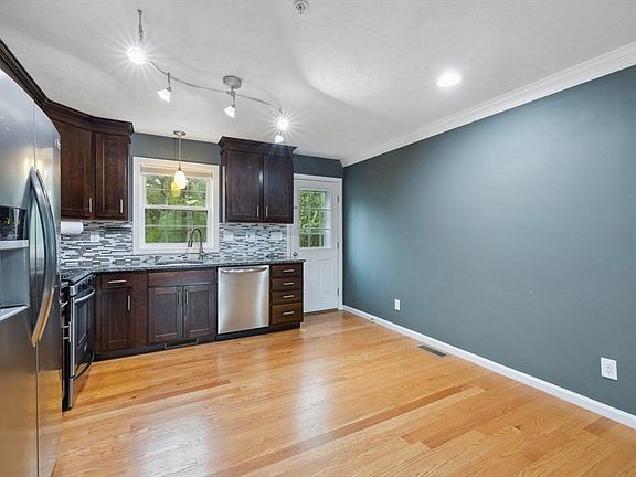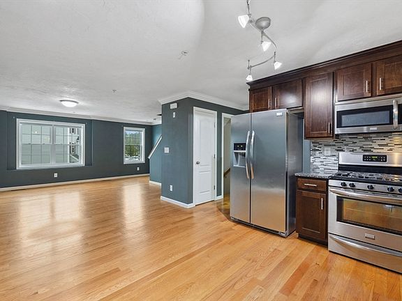 RARELY AVAILABLE, luxury townhouse, in the highly sought after Tadmuck Meadows! This massive END UNIT, with a GARAGE, is the perfect alternative for single family living! Upon entrance onto the main level of this meticulously maintained home, the open, integrated space of the kitchen/dining and living area is ideal for entertaining. The second floor hosts both bedrooms and the primary bedroom is vast in space with vaulted ceilings! The top floor provides an EXCLUSIVE LOFT area that is the perfect flex space for additional sleeping quarters, a home office or personal fitness area. There is a private back deck that abuts the peaceful wooded scenery, with vacant common area lawn space surrounding the exterior. Brand new HARDWOOD FLOORING installed in both bedrooms, as well vinyl flooring in the laundry room (August 2024)! Energy efficient Rinnai Tankless hot water heater! Barely used LG WASHER & DRYER to remain for added convenience! Pets allowed! TOP RATED public SCHOOL district!