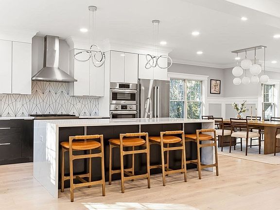 - Features: Dining Area, Pantry, Kitchen Island, Breakfast Bar / Nook, Exterior Access, Recessed Lighting, Lighting - Pendant, Crown Molding, Flooring - Engineered Hardwood