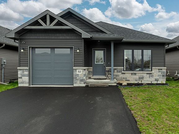 BUYER INCENTIVE: To entice potential buyers, sellers are offering to cover the FIRST YEAR OF MUNICIPAL TAXES for the new owners after taking possession of the property. This valuable perk is estimated to be worth around $3,481.92, providing the new homeowners with a financial breather during their transition. However, the precise amount for the 2024 tax year will be determined and communicated at a later date. Welcome / Bienvenue to 32 Barley Trail! This delightful 2021 bungalow by Farnsworth Construction offers an inviting open floor plan filled with natural light. The living room boasts a soaring vaulted ceiling, flowing seamlessly into the dining area and stunning kitchen. The gourmet kitchen is a chef's dream, with ample quartz countertops and abundant cabinet storage. Sliding glass doors lead out to the back deck, providing a tranquil view of the neighbouring farmer's field - the perfect spot for morning coffee or evening entertaining. Two spacious bedrooms and a full bathroom with a quartz vanity complete the main level. Downstairs, the fully finished basement provides exceptional bonus living space. Unwind in the large rec room or utilize the two additional bedrooms for guests or a home office. A second full bathroom with quartz counters and a laundry room add convenience. Exterior highlights include a brand-new asphalt driveway and an attached single-car garage. This impeccable new construction bungalow offers low-maintenance living and endless charm in a serene setting. Could it be your Home Sweet Home? Est-ce que ca pourrait etre votre Home Sweet Maison?