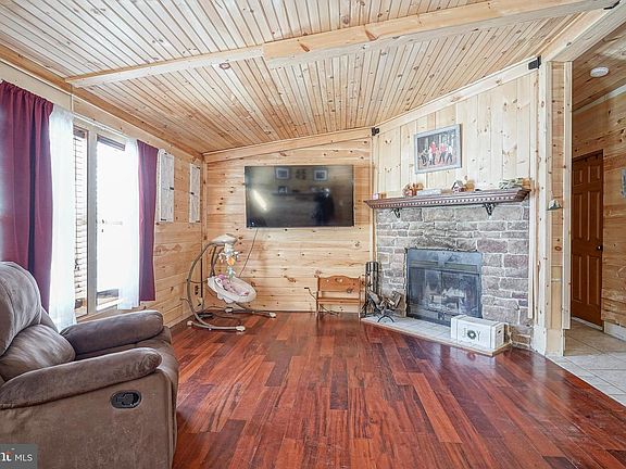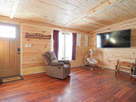 Adorable 3-bedroom ranch offering easy one-floor living on over 2 acres! Step into a cozy living room featuring hardwood floors, warm wood-plank walls, and a wood-burning stone fireplace—perfect for crisp nights at home. The layout flows into a spacious dining room (more charming wood-plank walls) and an adjoining, oversized kitchen with waterproof luxury vinyl plank flooring, glass tile backsplash, and some updated cabinetry. The open-concept feel makes entertaining a breeze. The primary bedroom is generously sized and includes an additional sitting room—ideal for a home office, nursery, or future walk-in closet—plus extra closet space and a full bath. Two additional bedrooms feature vinyl plank flooring. You’ll also love the large laundry room with ceramic tile. Sliding doors off the kitchen lead to a beautiful deck overlooking the expansive yard. Several updates are already in place—this home is ready for a new owner to bring their vision and add the finishing touches!