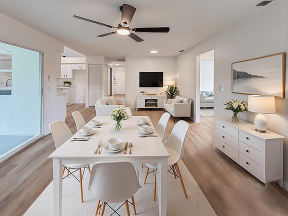 This completely updated CONCRETE BLOCK, BRICK FRONT home offers comfort, style, and efficiency in one perfect package. Enjoy peace of mind with a NEW ROOF, NEWER HVAC (2024), and a SOLAR OPERATED WATER HEATER that conserves energy. Freshly painted inside and out, this home shines with ALL NEW FIXTURES, NEW SOFT CLOSE WHITE SHAKER CABINETS, ALL SS APPLIANCES, and gleaming QUARTZ COUNTER TOPS. NEW LVP FLOORING flows through the main living areas, while NEW CARPETS add comfort to the bedrooms. The LARGE MASTER BEDROOM provides a private retreat, and the EXPANSIVE 416 SQ FT SUNROOM offers endless possibilities for relaxation or entertaining. The fully fenced backyard includes a STORAGE SHED COMPLETE W/ WORK BENCH AND ELECTRICITY — perfect for projects or extra storage. Situated on a PRIVATE LOT, currently, with a wooded lot next door, you'll enjoy having ONLY ONE NEIGHBOR! This home truly has it all — modern upgrades, energy savings, and a serene setting.