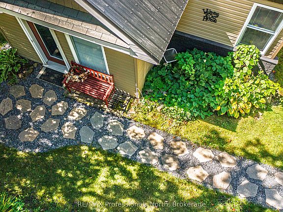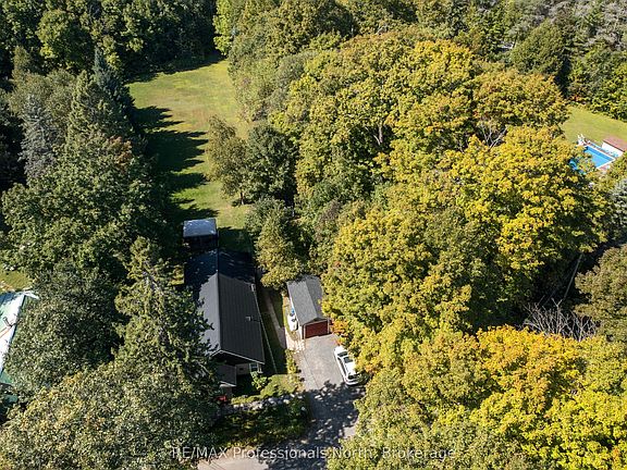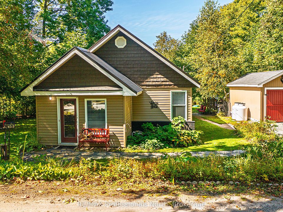 Welcome to this charming country home, set on a beautifully landscaped 1-acre lot framed by mature trees. Located in a quiet area just minutes from downtown Huntsville, you can enjoy the best of both worlds; peaceful living with the convenience of town nearby, plus access to Vernon Lake just down the road with boat launch. Inside, you'll find gleaming hardwood floors and an inviting eat-in kitchen complete with new cupboards and stainless steel appliances. The home offers 3 bedrooms, 1 full bath, and the convenience of main-floor laundry and living. The unfinished basement provides excellent storage or the opportunity to finish it for extra living space. This property has seen many updates including siding, windows, steel roof, heating and cooling systems, and a new back deck. Stay comfortable year-round with propane heat pump and a/c, and enjoy peace of mind with a Generac hook-up for generator. Outdoor living shines here with a spacious back deck, gazebo for entertaining, garage, and a shed/workshop with hydro .A well-maintained and immaculate home in a quiet country setting this close to Huntsville is a rare find. Don't miss it!