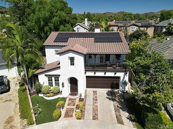 STUNNING 5 BEDROOM HOME ON POOL SIZE LOT IN AWARD WINNING NEIGHBORHOOD!!!! This highly sought after track of homes in Ladera Ranch is known for its holiday cheer, stunning floor plans, and central location. Welcome to Sarasota neighborhood... this 5 bedroom 3 bath home is nestled towards the end of the cul de sac on a pie shape lot and resembles a stunning designer masterpiece that feels like it leaped right off the pages of a luxury magazine. Vinyl floors greet you upon entry as the bright natural light shines on to your chic living room. The gourmet kitchen is a chef’s paradise, boasting top-of-the-line stainless steel appliances, gleaming corian countertops, a spacious island with seating, and custom cabinetry that provides ample storage. This storybook home is not just about looks; it’s been thoughtfully designed with modern conveniences, plantation shutters, and energy-efficient features. Solar panels are installed and a main floor bedroom with full bathroom ensures comfort and sustainability. Upstairs you will find 3 guest bedrooms and the primary bedroom with oversized balcony for enjoying morning coffee or evening sunsets. The backyard features privacy, fruit trees, and artificial turf for easy maintenance. As one of the first phases in Ladera, residents enjoy lower tax rate and lower mello-roos fees. Truly a rare find and stunning property which will please the most discerning buyer.