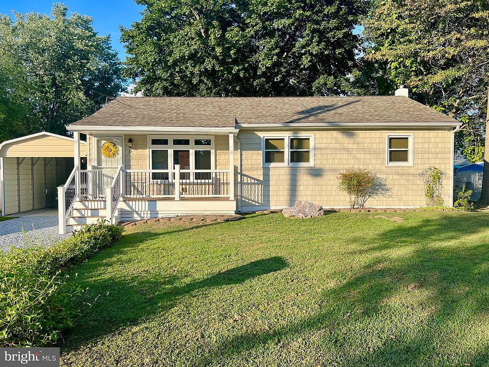 Step into this beautifully maintained 3 bedroom ranch which offers perfect blend of comfort and convenience, nestled within walking distance to the Delaware River and the scenic Riverview Beach Park. Imagine morning walks along the water and evening sunsets for viewing on your composite deck covered front porch! From the freshly painted walls to the gleaming hardwood floors, every detail reflects careful maintenance and pride of ownership. The living room features gorgeous large casement windows and hardwood flooring that adds warmth and character. The kitchen boasts of 42" cabinetry, a pantry, undercabinet lighting, solid surface countertop, gleaming white subway tile backsplash, beautiful white Kohler double sink with up-to-date fixtures. Step outside to the pristine private 17 x 10 covered rear deck for sipping morning coffee or relaxing in the evening. This deck provides a comfortable outdoor living space protected from the elements and opens to your fenced rear yard. The detached garage is as clean as a whistle with an attached covered patio area for seating, entertaining, or a covered workspace for your DIY projects/hobbies. Other fine features include new gas heater and central air unit (July, 2024), updated kitchen and bath, composite front decking with vinyl railings, security system, and custom window blinds. This home is truly turn-key-- all that's missing is you!